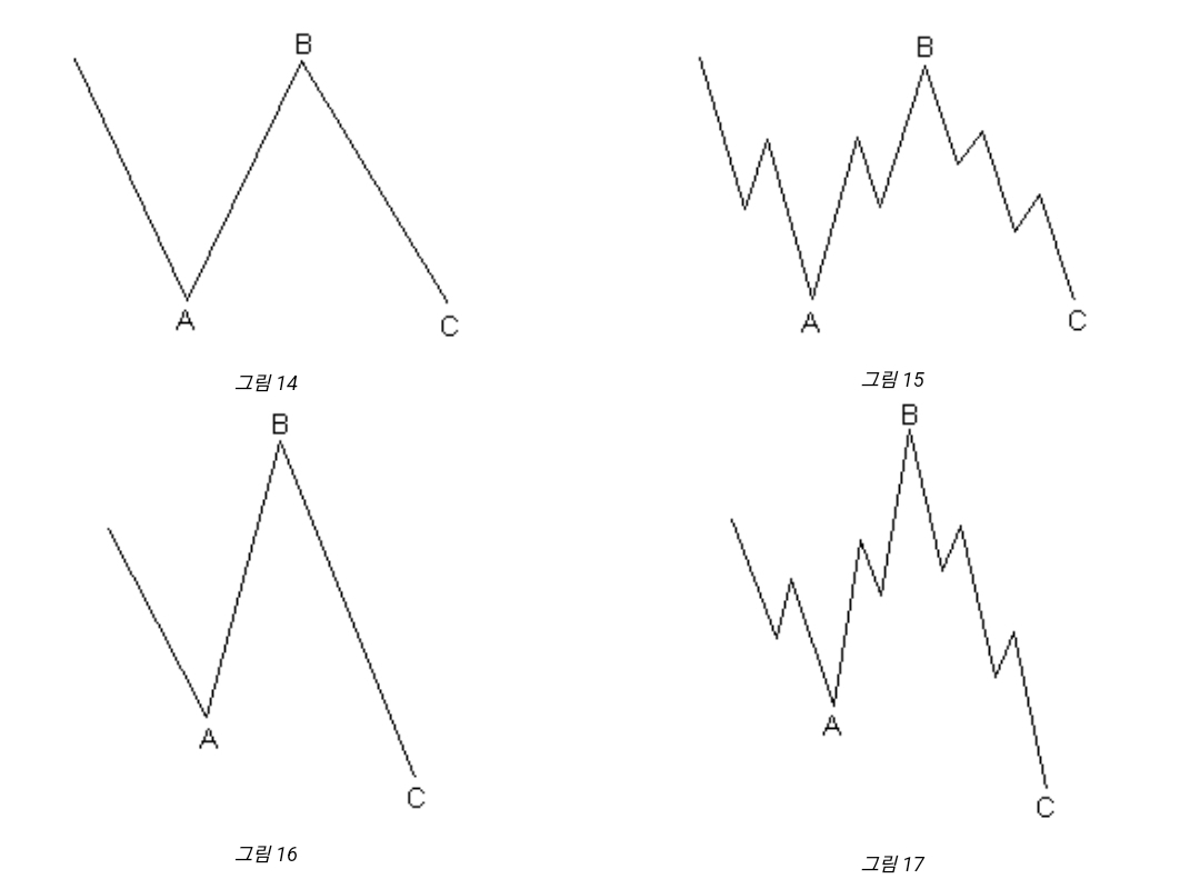 - 3개의 큰 파동을 하나의 파동으로 보고 ABC파 또는 조정파라고 한다